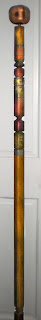 So I’ve got all this stuff in my studio that I don’t know what to do with. This walking stick was our penultimate project in 3D Design. We brought a 2×4 to class and then, after being shown most of the tools in the wood shop, we were told to work on that 2×4 until it was a walking stick. Many people’s sticks were all naturalistic and such — carved leaves and vines and so on. One very unusual one was a bright multi-colored syringe full of candy. Another very cool one was a sharpened stick with 3 carved fishes on it, as for a barbecue. Mine looks like a piece of furniture. I had fun on it, though.