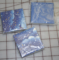 Second, the books. I looked around the studio after the invitation addresses went out, and decided I could still make the artistbook swap deadline — if I got them done today and overnighted them, that is. I got right to work 🙂 No time for a new design, so I decided to do something I’ve done before, only with different covers. And I’ve never swapped these before.