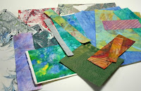 It’s difficult to get back to listening to myself and working from within. Sometimes when I’m unsure about how to approach the next piece, I find inspiration in digging through my stash of variously decorated papers. The designs are great to look at, but what’s more valuable is that looking at these papers revives a kinetic memory of the me that decorated the papers. I remember what it was like to spread out the papers on the table outside, to cook the paste, to mix up the paint and spread it on the paper and move it around with combs and sponges, to drop ink and watch it spread into lovely patterns, to wait while the ink dries to just this consistency so that I can spread it this much with this tool; to respond to the unexpected combination of these colors, the gestural effect of this mark.