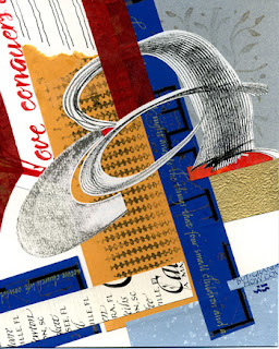 Oops. I think my next collages had better have newspaper in them, or blood, or paint splats. Maybe just Times New Roman type would suffice. It’s certainly not precious.