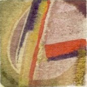 The craftsmanship of these exercises is challenging — a bunch of little pieces of painted papers adhered with PVA onto one side of a 9″ x 12″ sheet of bristol. And as we all know, pasting anything on one side only will cause cockling, wrinkling, generall drawing-up of that side of the paper. Can’t fight physics. The study shown above is 6″ square.