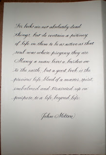 This weekend I hosted five high-school boys plus our own for a four-day meeting. I have been driving and driving and driving. And cooking. I am pleased to have done something creative every day during it all.I got out some exemplars and worked on some new capitals before I started addressing the invitations … there are 400 invitations to this wedding, so I’ll be doing a lot of pointed pen work during the next couple of weeks. The x-height of these letters is about 1/8″.